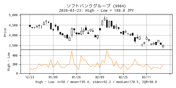 | 78 | 9984 | ソフトバンクグループ | P | 情報・通信業 | 3,553 | 3,365 | 0.054 | 43,467,400 | △ |