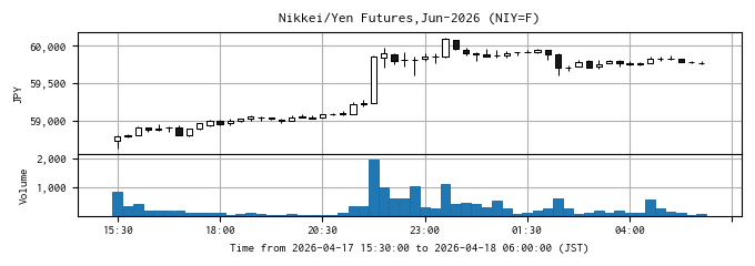 定点観測として、週末の日経平均先物の値動きを記録しています。