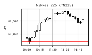 今週の日経平均の終値は 59,716 円、 先週の終値に比べ +1,240 円となり、 週足では陽線を形成しました。