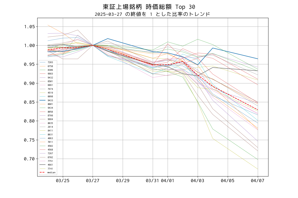 | 44 | 5727 | 東邦チタニウム | P | 非鉄金属 | 3,305 | 2,974 | 0.109 | 5,129,700 | ▼ |