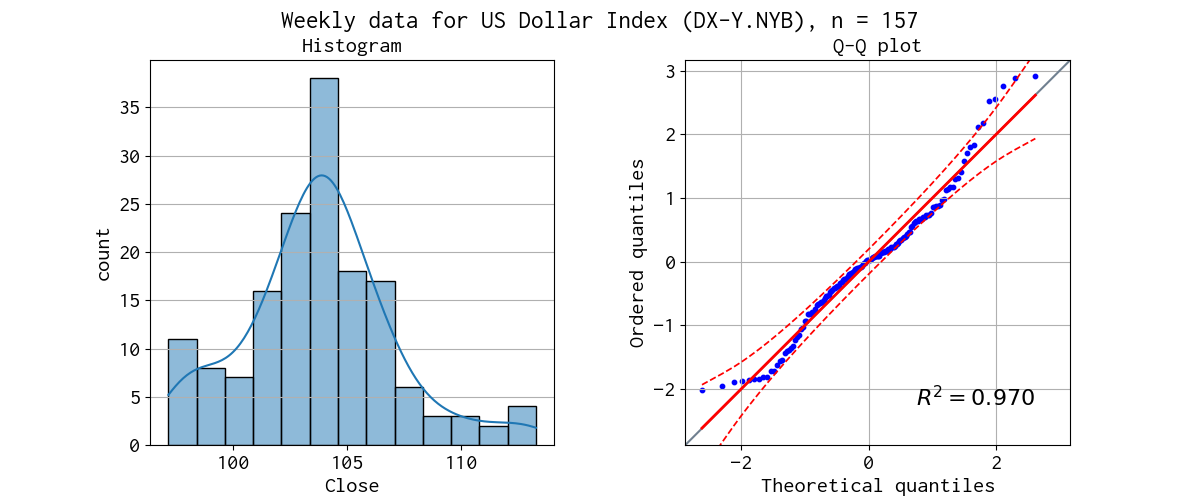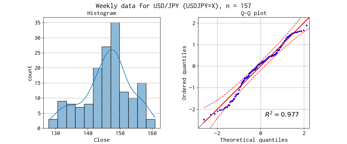 対象データのヒストグラムと Q-Q プロットを示しました。