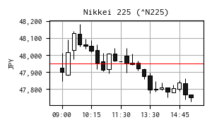 前日比 25.66 円安の 47,925.22 円と小幅下落して始まりました。