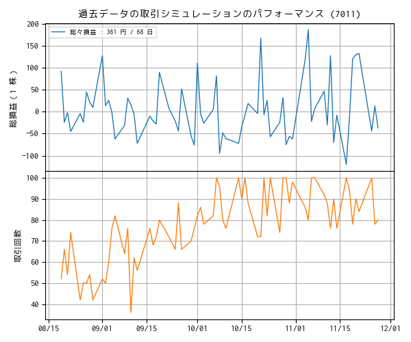 対象銘柄の本日のチャートとシミュレーション結果です。