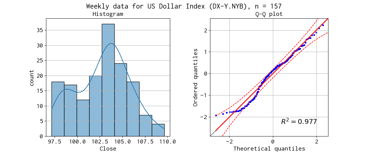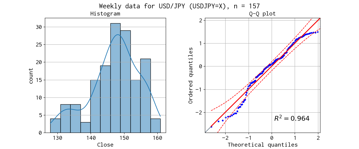 対象データのヒストグラムと Q-Q プロットを示しました。
