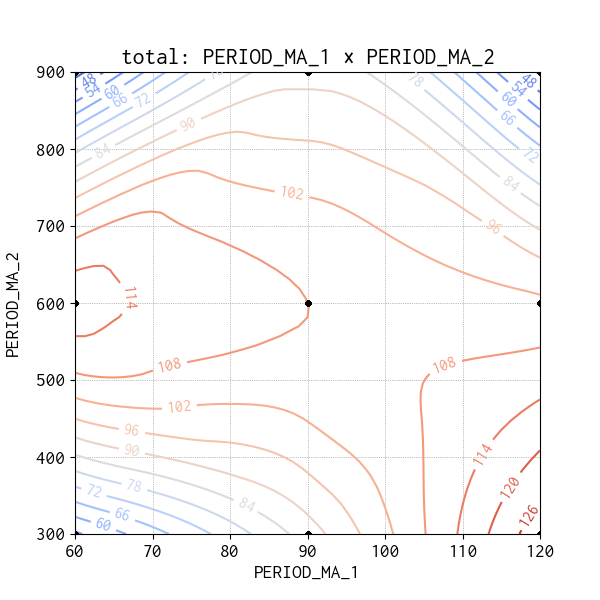 PERIOD_MA_1 x PERIOD_MA_2 の等高線図を作成しました。