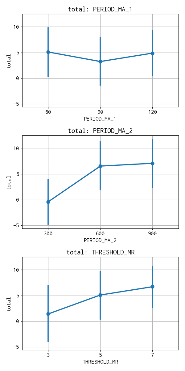 | PERIOD_MA_1 | PERIOD_MA_2 | THRESHOLD_MR | trade | total | |