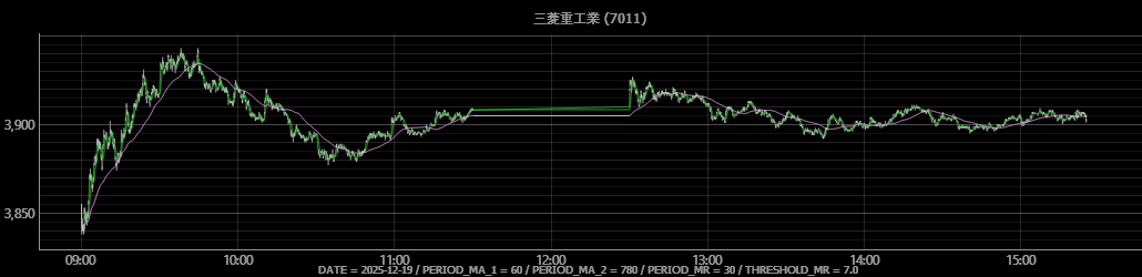 | 対象銘柄 | 7011 | 呼び値が 1 円で出来高が多い、東証プライムの銘柄を選定 | |||||||||||