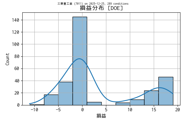 DOE のシミュレーション結果から損益分布をヒストグラムにしました。