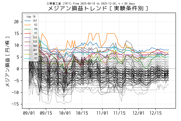 | 対象銘柄 | 7011 | 呼び値が 1 円で出来高が多い、東証プライムの銘柄を選定 | ||||||||||||||||||