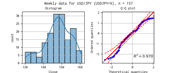 対象データのヒストグラムと Q-Q プロットを示しました。