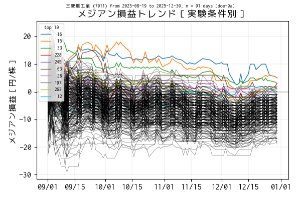 平均損益の時と同じように、当日のメジアンを算出するには起点の 2025-08-19 から当日までのデータのメジアンを算出しています。