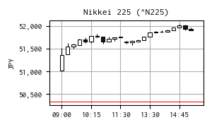 | 始値 | 51,010.28 | 09:00 | 安値 | 50,995.67 | 09:00 |