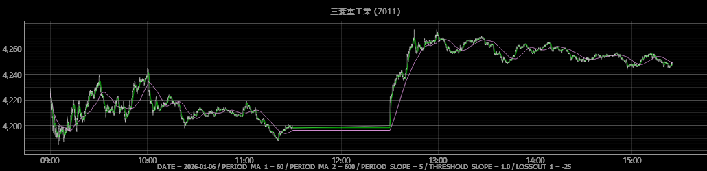 | 25 | 2026-01-06 12:50:15 | 7011 | 売建 | 4259.0 | 100 | ||