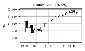 | 始値 | 51,367.98 | 09:00 | 安値 | 51,189.14 | 09:00 |