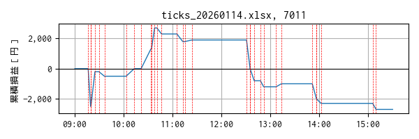 | 30 | 2026-01-14 14:02:10.456957579 | 7011 | 売埋 | 4660.0 | 100 | -300.0 | |