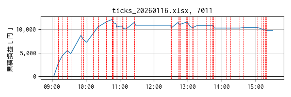 今日の累積損益の時系列トレンドです。