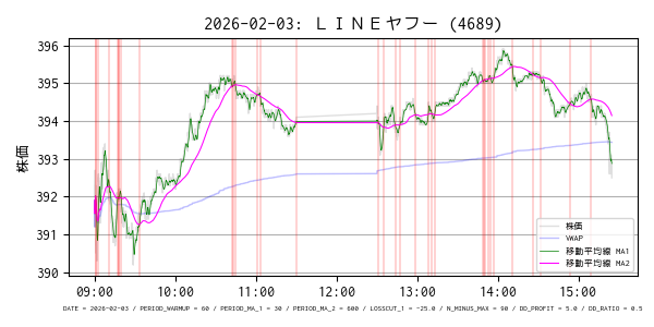 LINEヤフー (4689) の方はいい感じにトレンドに乗れましたが、セブン銀行 (8410) の値動きに全然乗れませんでした。