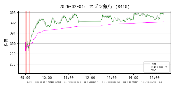 セブン銀行 (8410) も最初はマイナススタートでしたが、なんとかプラスになって、11 時前に建玉を返済しました。