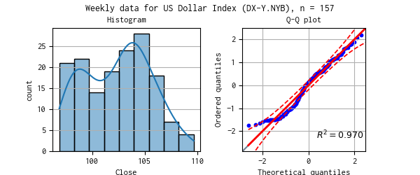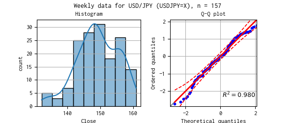 対象データのヒストグラムと Q-Q プロットを示しました。