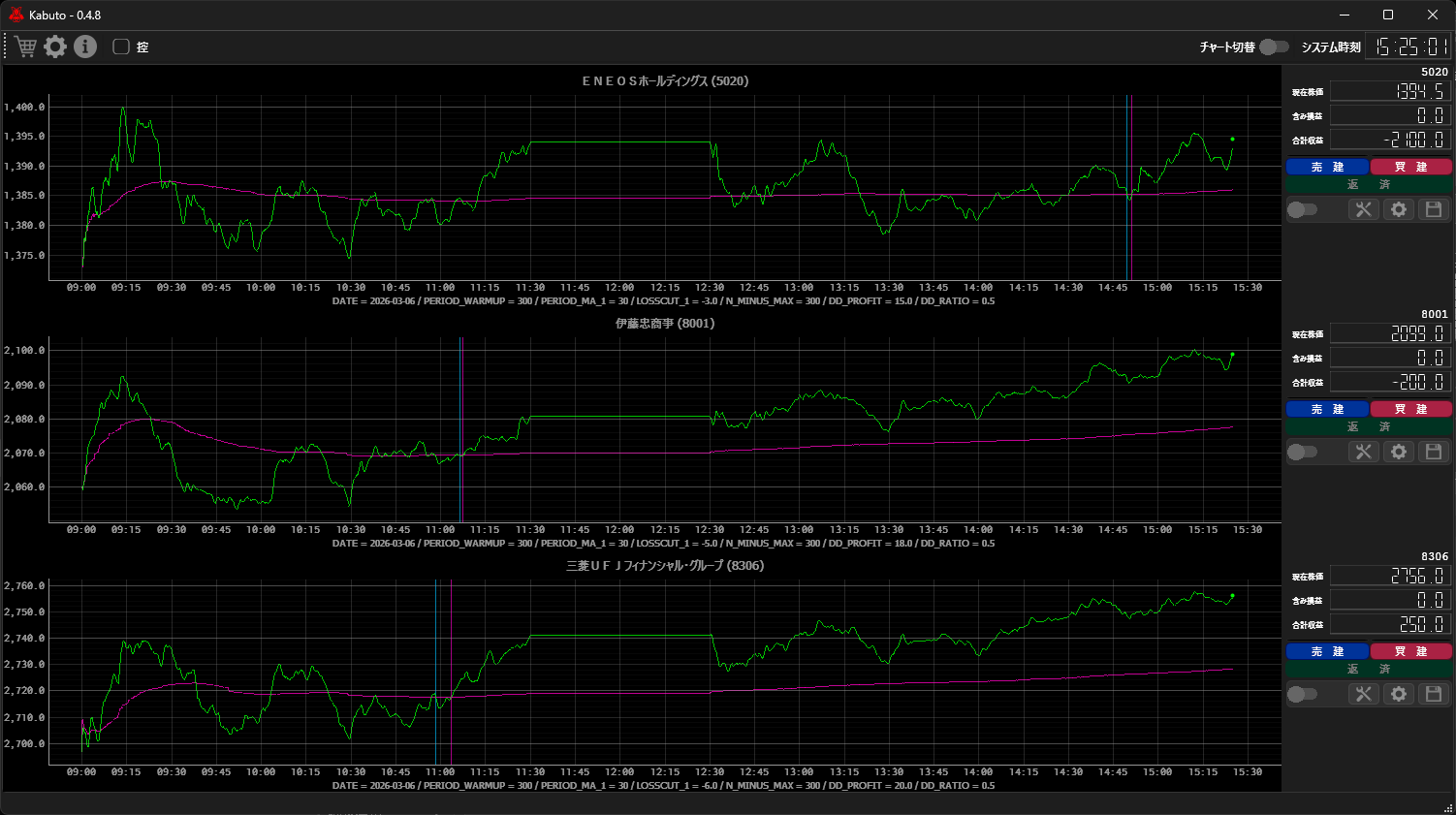 楽天証券の口座でデイトレの自動売買に挑戦しようと、Windows / Excel 上で動作する マーケットスピード II RSS を利用した Python アプリ (Kabuto) を開発しています。完全自動売買を実現できるまでの道程は長いですが、日々、セミオートでアプリを使ってトレードをしながら改良を進めています。