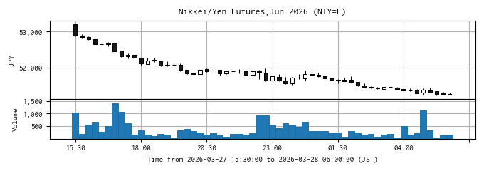 定点観測として、週末の日経平均先物の値動きを記録しています。