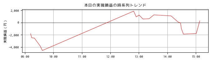 上昇トレンドに乗れた後は、最初の損失を取り返してさらに収益が出るまでの含み益が出たのですが、さっさと利確をせずにぐずぐずと後場まで持ち越してしまいました。