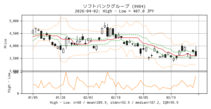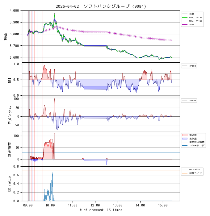 今日の ソフトバンクグループ (9984) は 3,790 円 (+26) で寄り付きました。