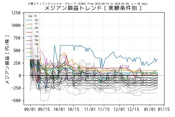 実験条件別のメジアン損益トレンド(データは当営業日まで)