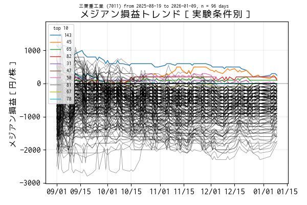 実験条件別のメジアン損益トレンド(データは当営業日まで)