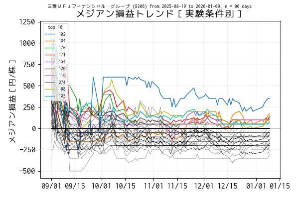 実験条件別のメジアン損益トレンド(データは当営業日まで)