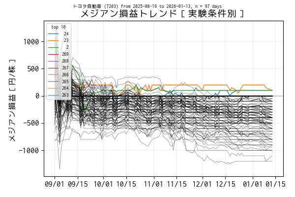 実験条件別のメジアン損益トレンド(データは当営業日まで)