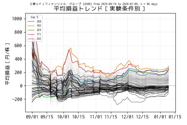 なお、母数が少ないうちは変動が大きいので、キリが良い 2025-09-01 からの平均損益をチャートにしています。