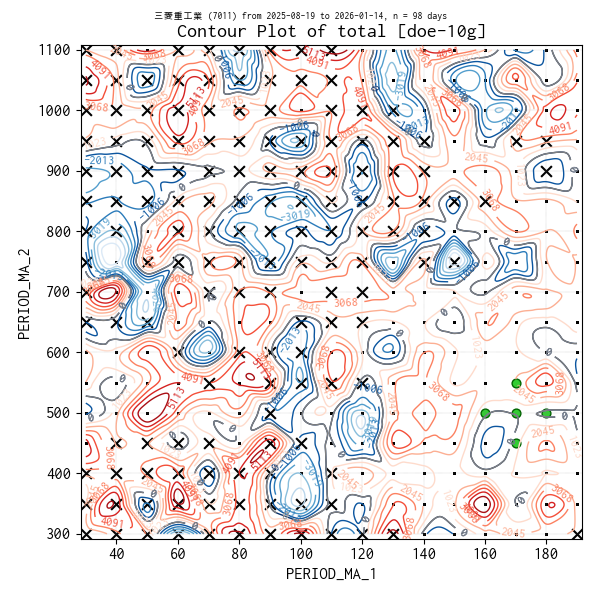 実験条件範囲の等高線図(データは当営業日まで)