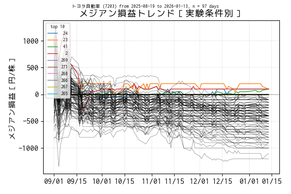 実験条件別のメジアン損益トレンド(データは当営業日まで)
