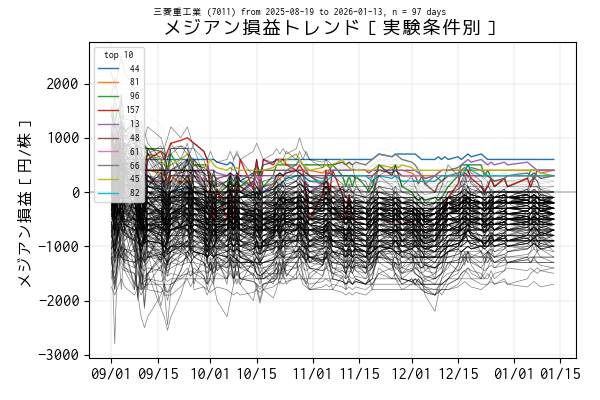 実験条件別のメジアン損益トレンド(データは当営業日まで)