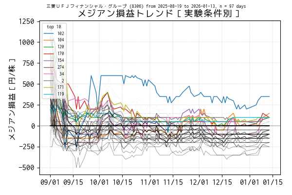 実験条件別のメジアン損益トレンド(データは当営業日まで)