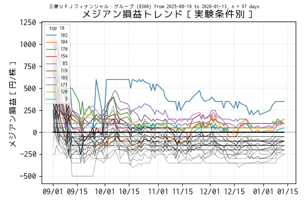 実験条件別のメジアン損益トレンド(データは当営業日まで)