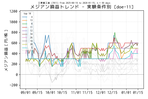 実験条件別のメジアン損益トレンド(データは当営業日まで)