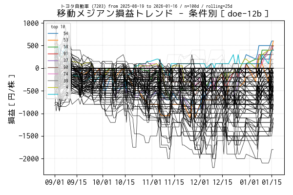 実験条件別の移動メジアン損益トレンド(データは当営業日まで)