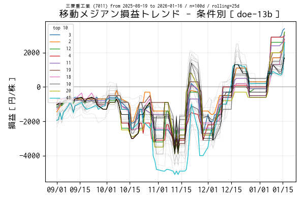 実験条件別の移動メジアン損益トレンド(データは当営業日まで)