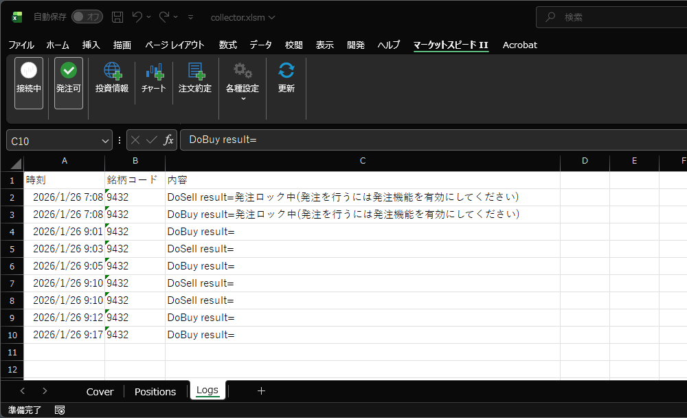 - MarketspeedⅡ RSS Excelで自動売買しよう